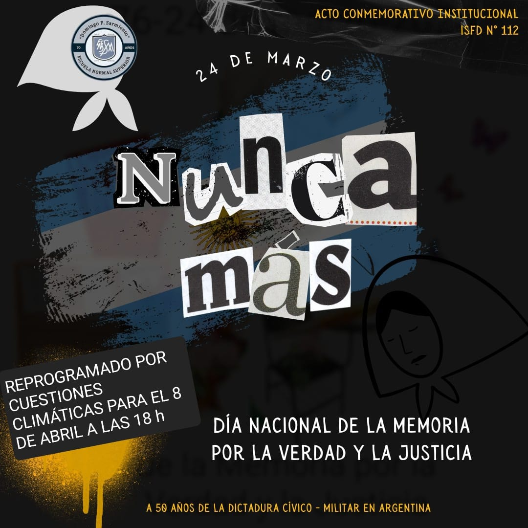 «Nunca Más» es un compromiso que renovamos cada día en nuestras aulas. Los esperamos para compartir este necesario momento de reflexión institucional.